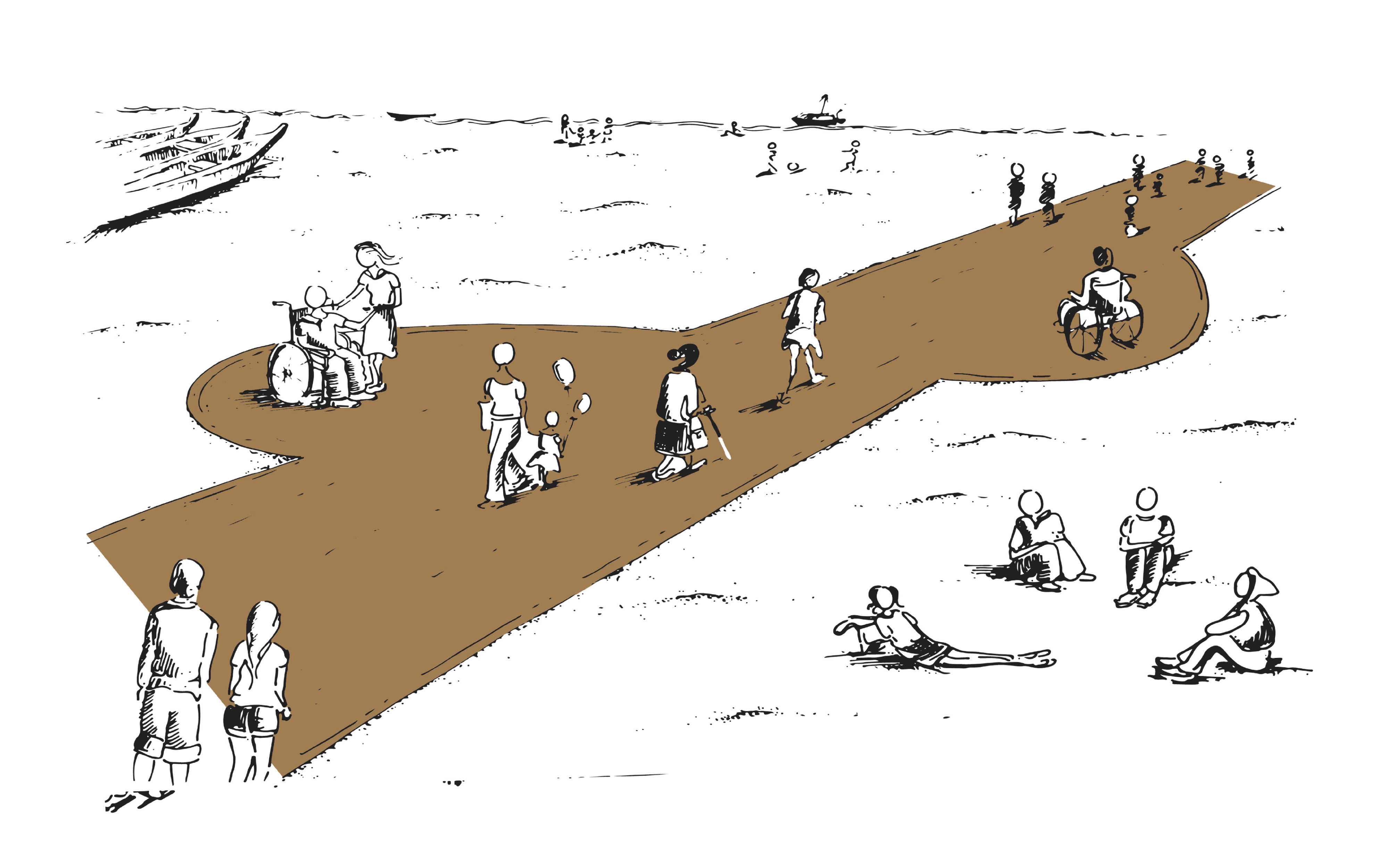 A Storyboard Illustrating Inclusive, Wheelchair-Accessible Pathways on Beach Landscape in Chennai, India